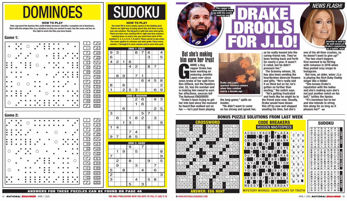 a Hug rapper Drake has been working on seducing Jennifer Lopez ever since news broke of her split from Ben Affleck, but the Hustlers star, 55, has his number and is making him sweat to earn her affections, sources tell The National ENQUIRER! “Drake’s been trying to get her into bed since the moment he heard Ben walked out on her — he’s just been playing