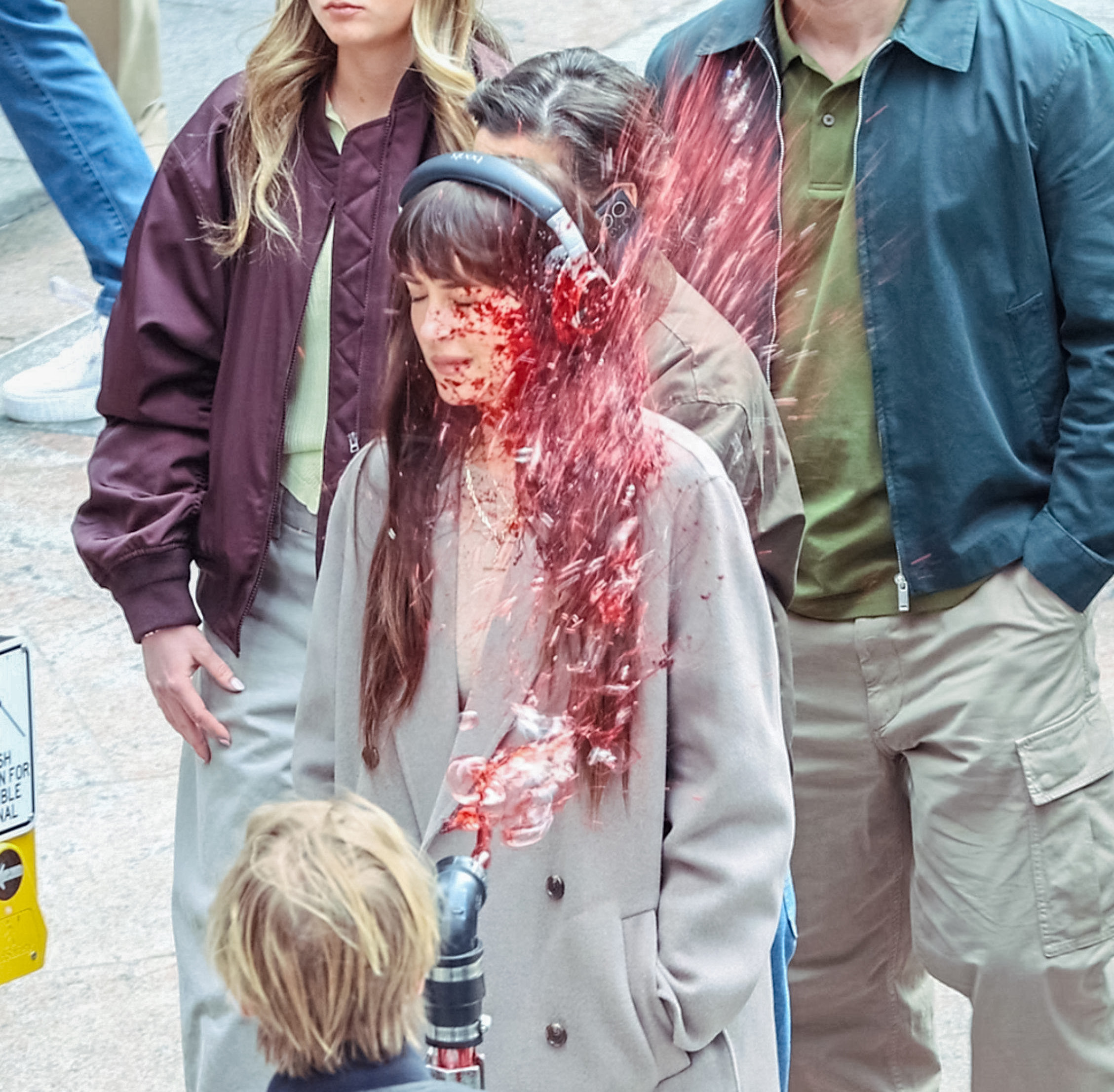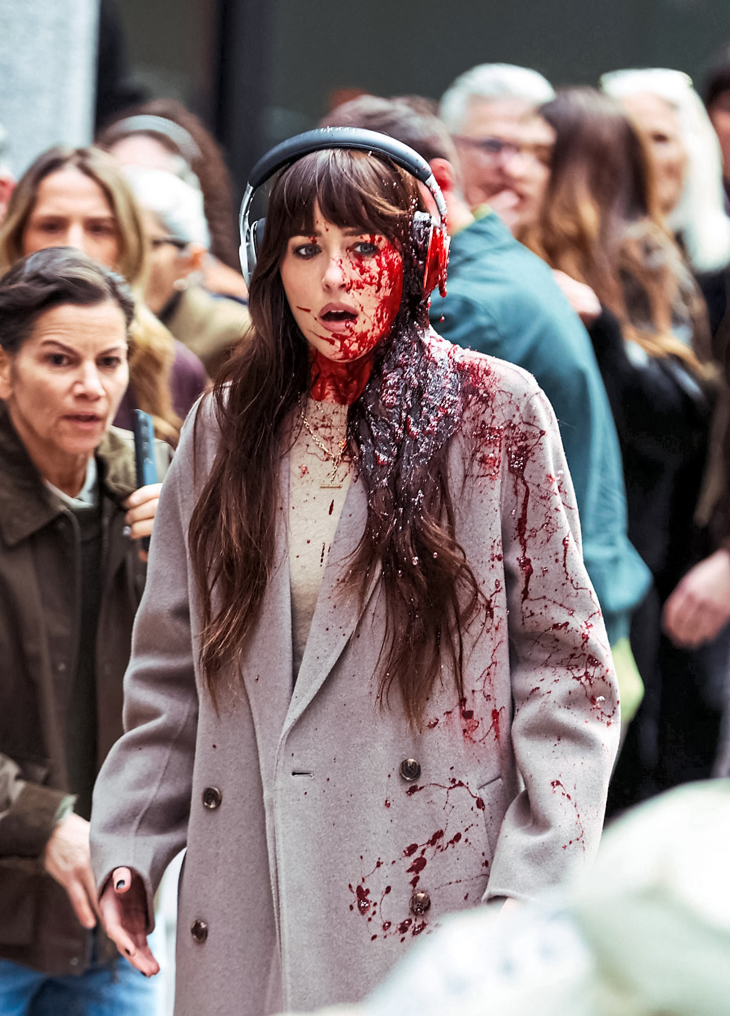 Dakota Johnson sports a few shades of red while filming the romantic thriller Verity in NYC
