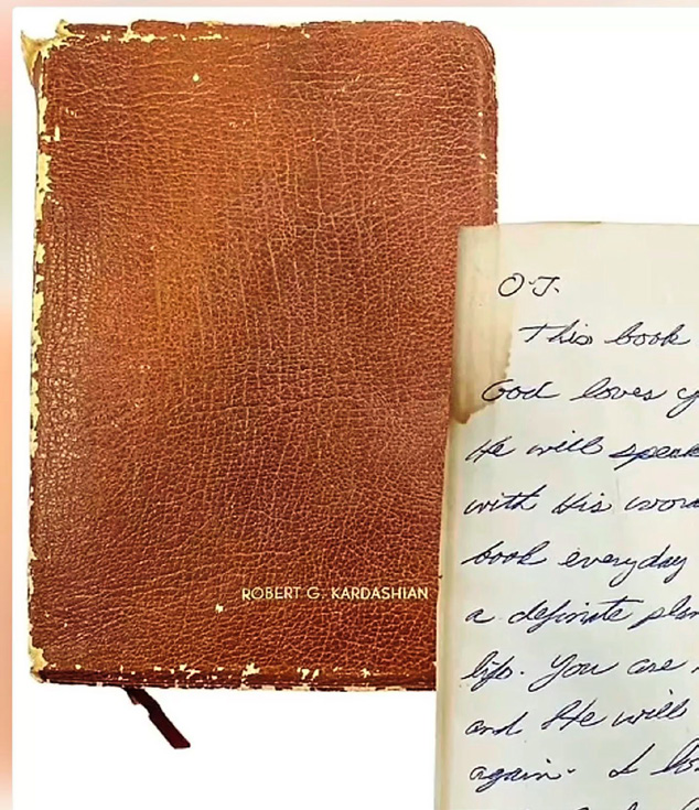 peeps piped up! As National ENQUIRER readers know, attorney Robert helped O.J. score acquittals in 1995 after he was accused of butchering Nicole and Ron outside of her Brentwood home. However, the ex-NFLer was later found liable for the pair’s demise in a 1997 wrongful death lawsuit lodged by their loved ones — and he was sacked with a hefty verdict of $33.5 million in damages! The Bible, which is embossed with Robert’s name, includes a heartfelt note he’d scribbled to O.J. right after his arrest, telling